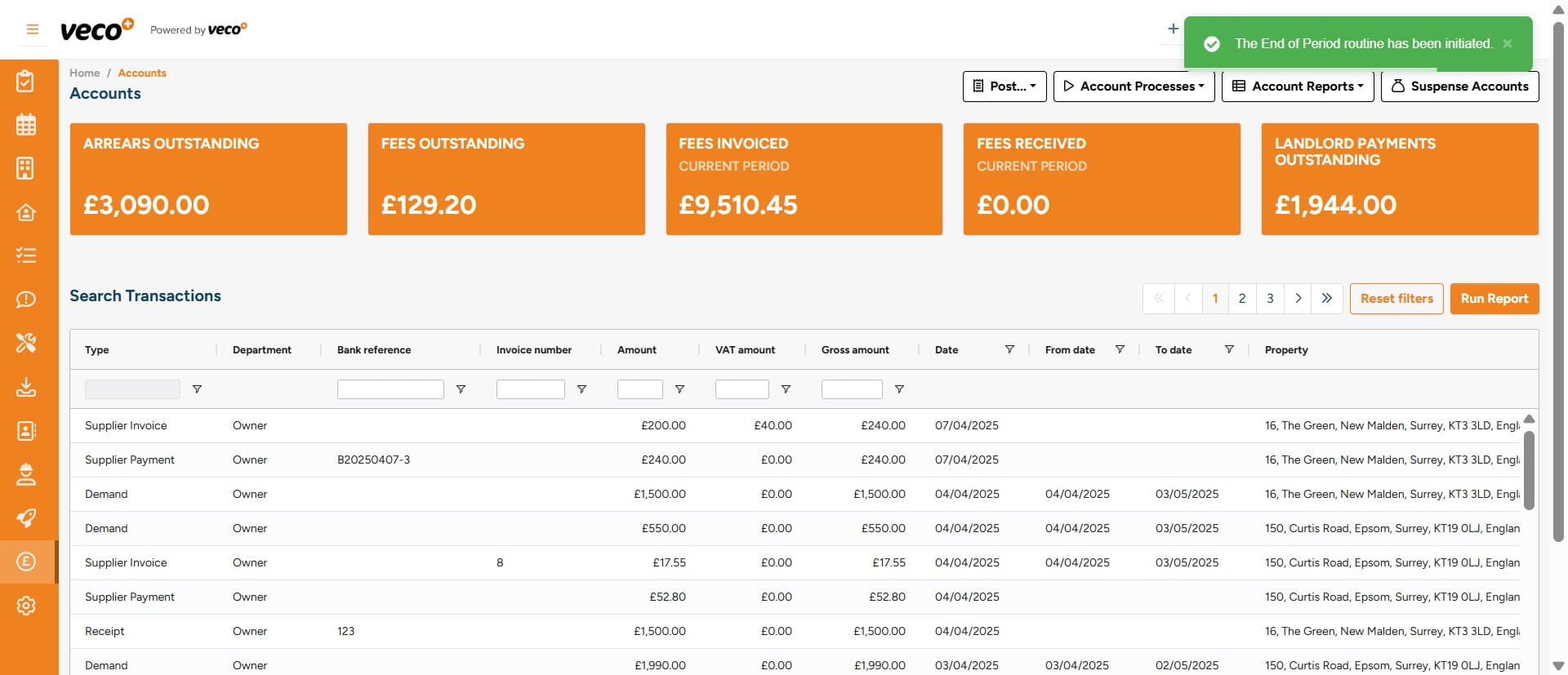 Select 'Start' to initiate the End of Period Routine