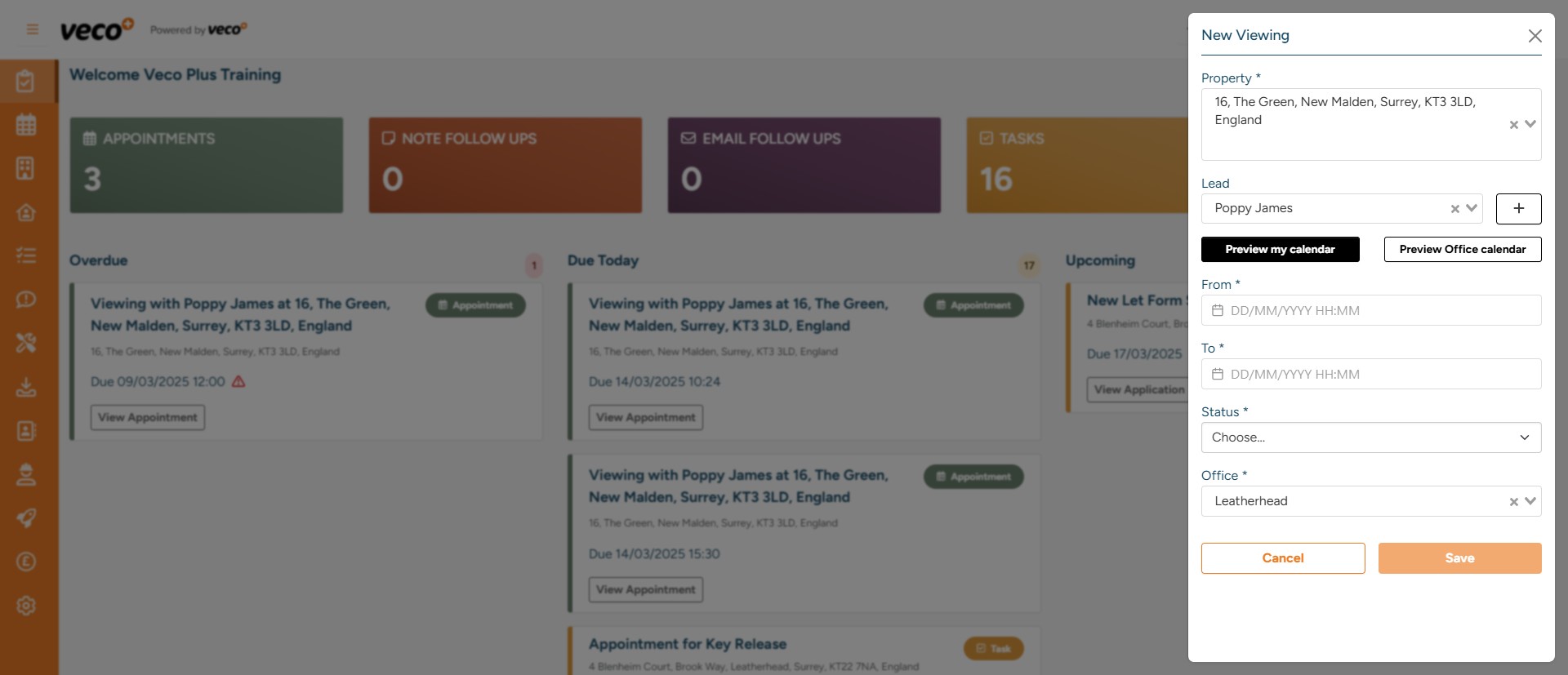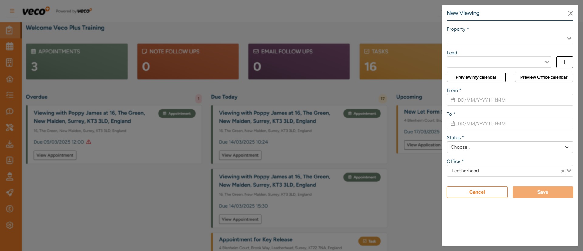You can also preview the calendar from here ahead of booking in the viewing to check availability, by selecting ‘Preview My Calendar’ or 'Preview Office Calendar'