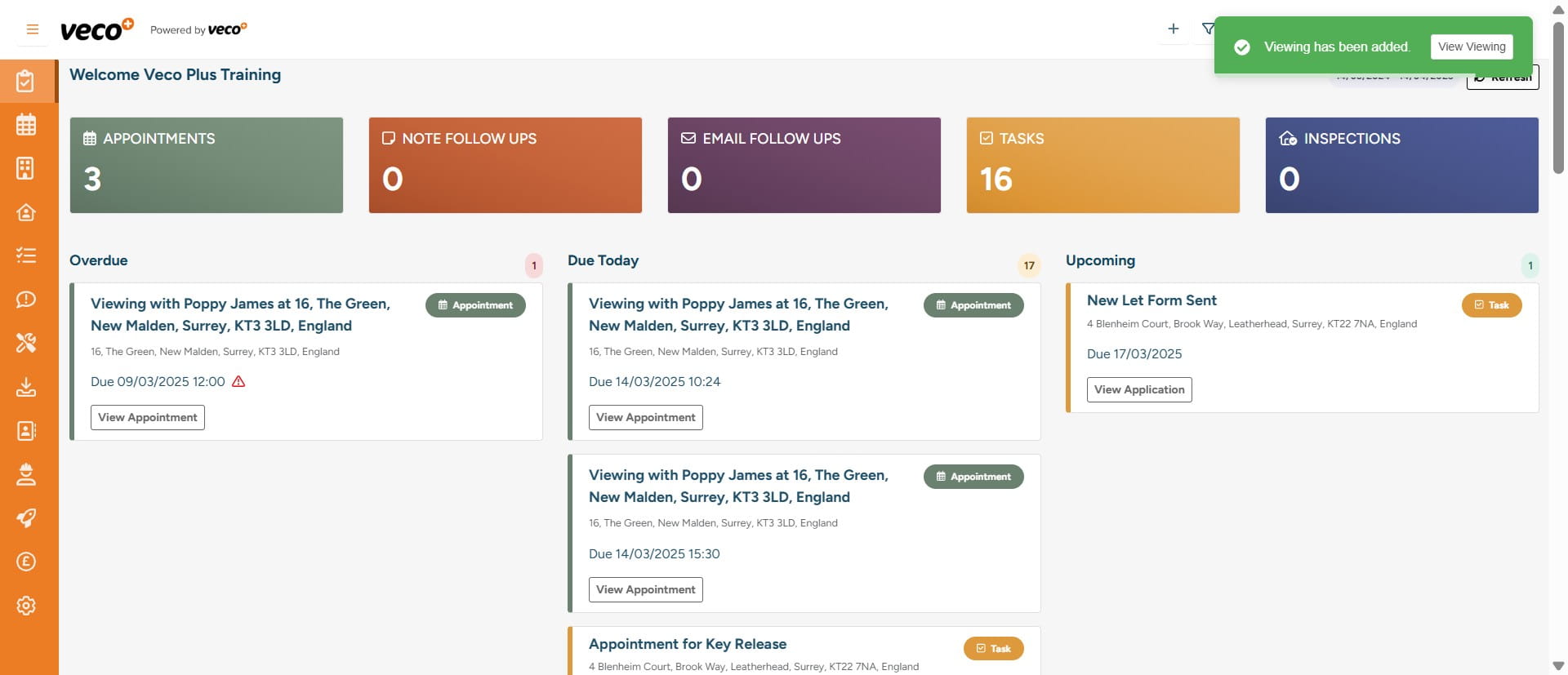 By selecting 'View Viewing' on the notification after saving, you will be able to add feedback, notes and follow up appointments. You can also get to the same place by selecting a viewing in the calendar and then 'Edit Viewing'
