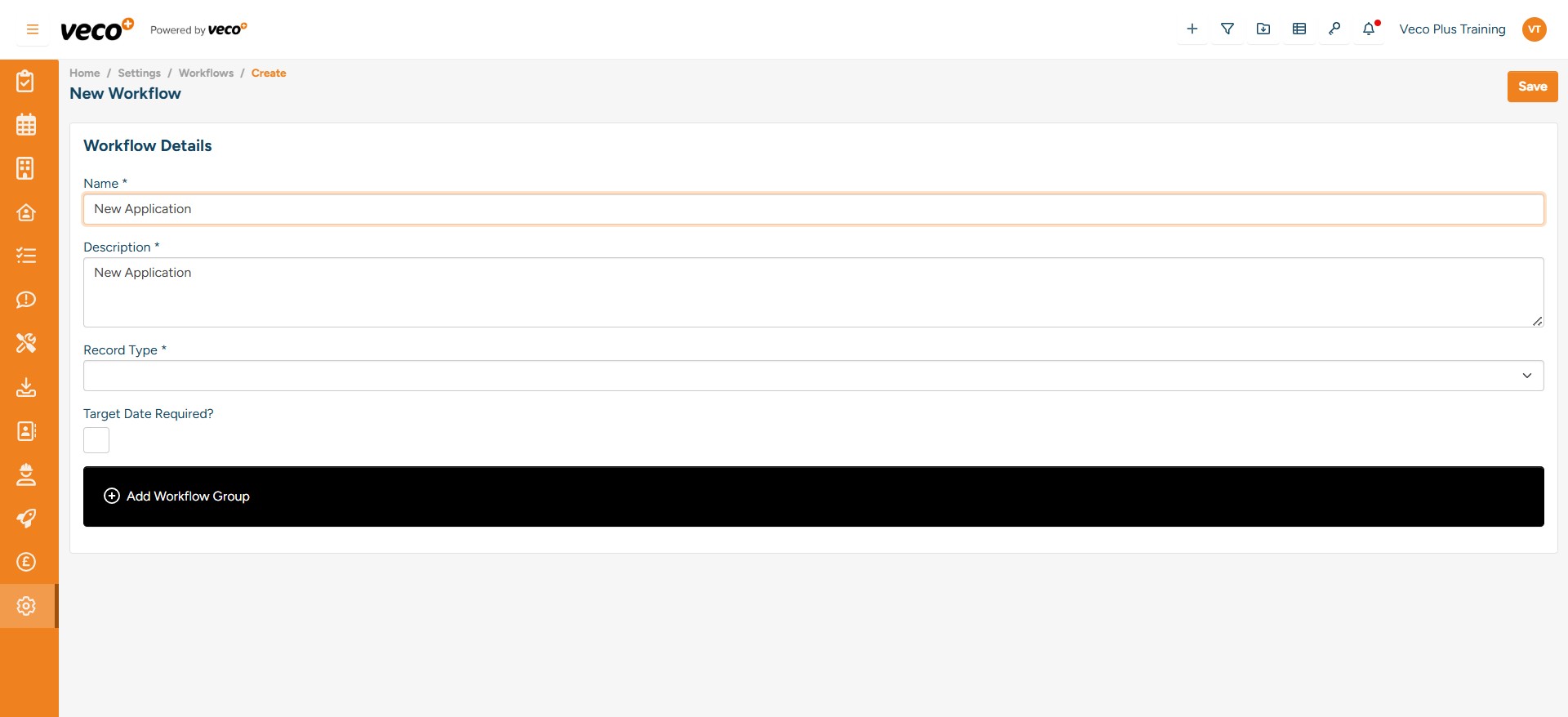 Add a ‘Workflow Group Name’ and select ‘Save’