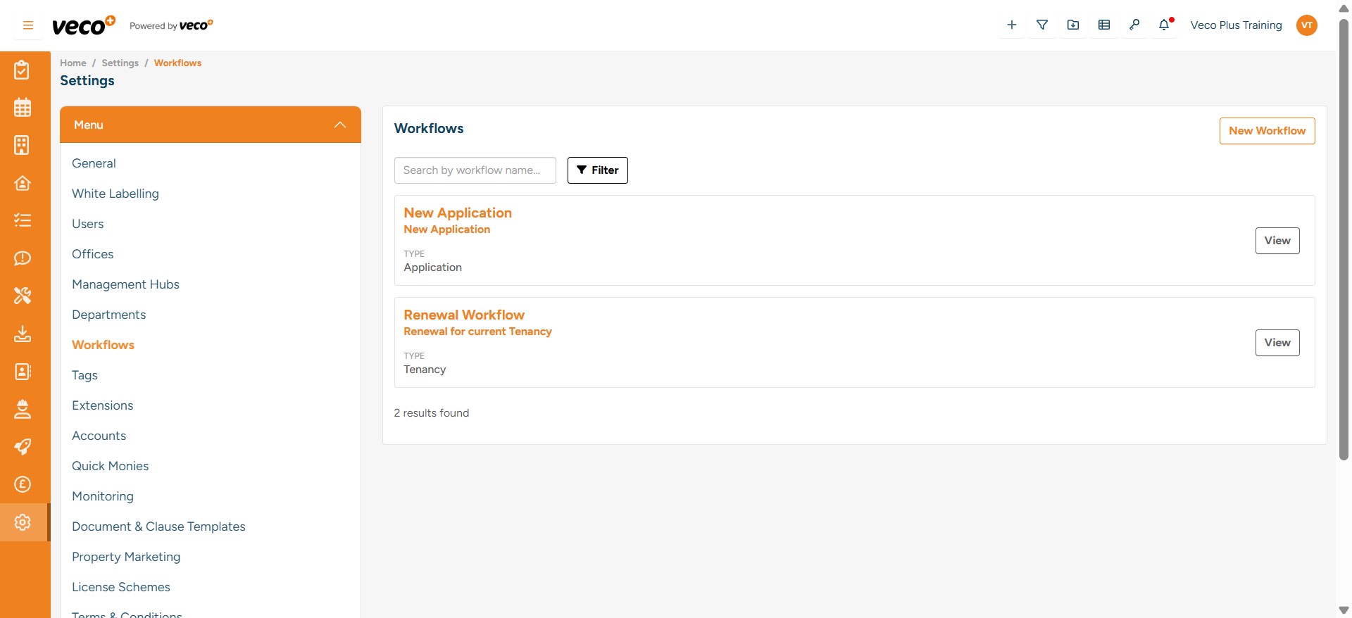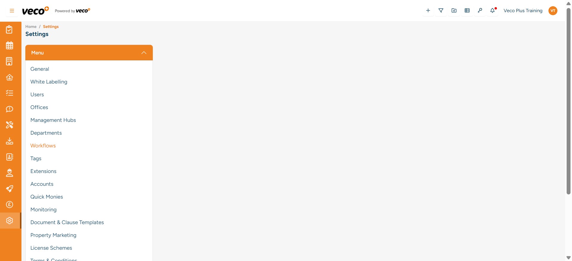 To add a new ‘Workflow’, select ‘Settings’ on the navigation bar