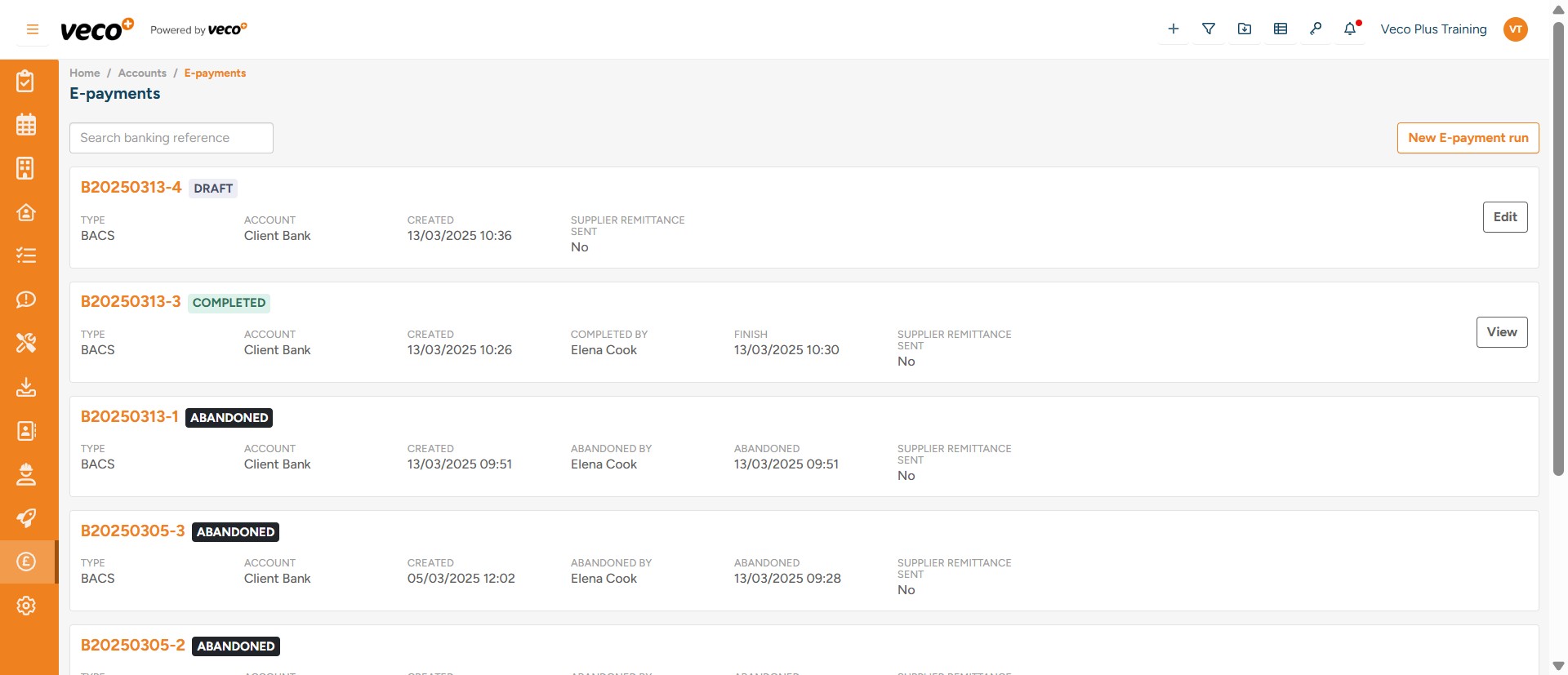Once the E-payment run has completed, you can select 'View'