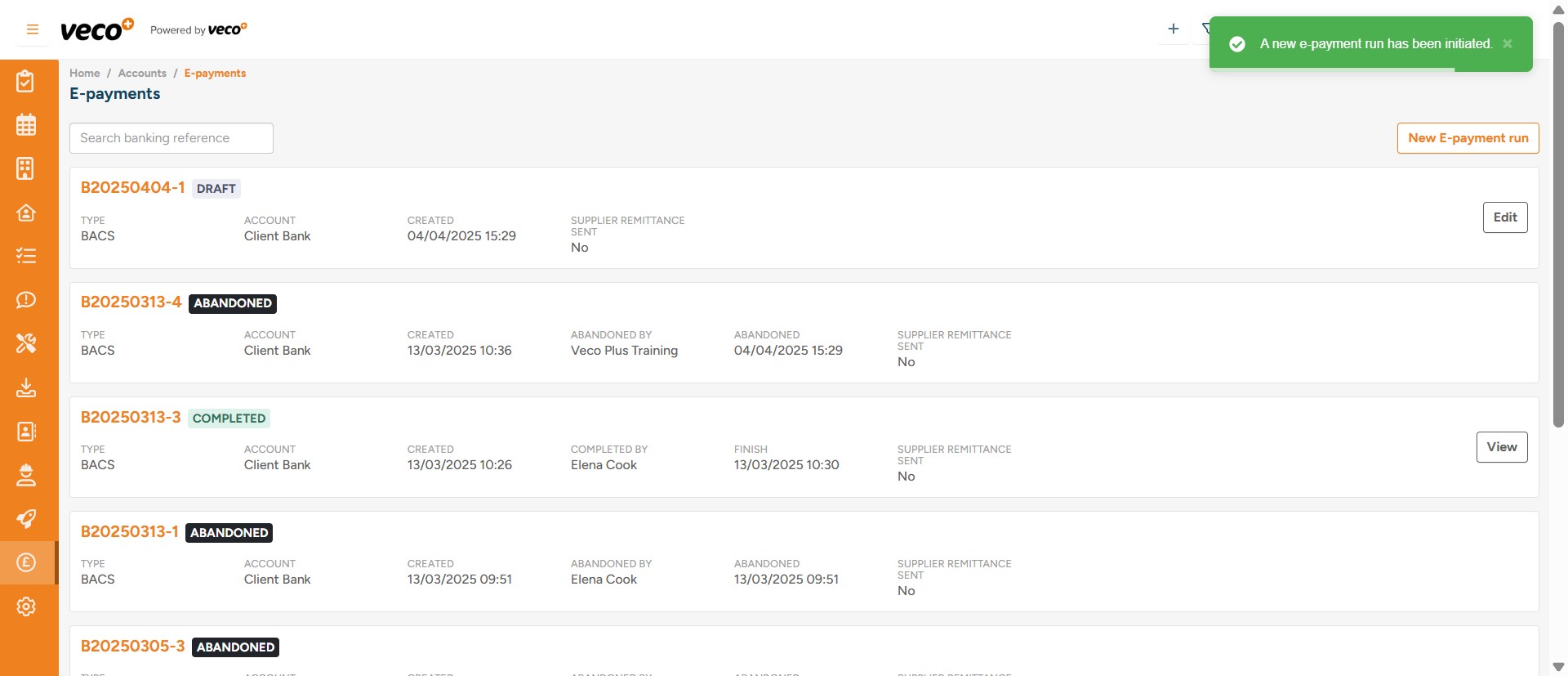 This will initiate the E-payment run as a draft