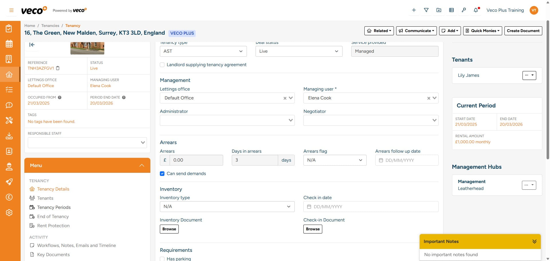 You can add specific notes via ‘Notes’ at the top, with any negotiations or conversations being logged against the Tenancy Period