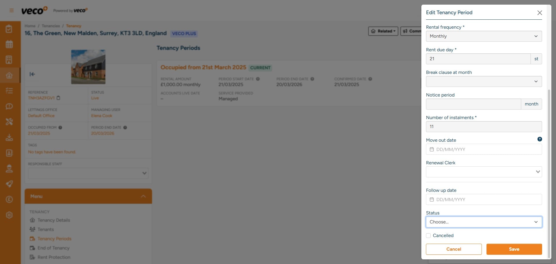 Once a Renewal has been agreed, a new Tenancy Period can be created under the Tenancy via the ‘New Tenancy Period’ button