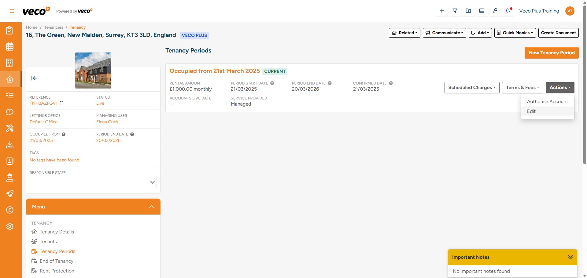 Select the Tenancy Period or 'Actions' and then 'Edit' on the Tenancy Period you would like to renew