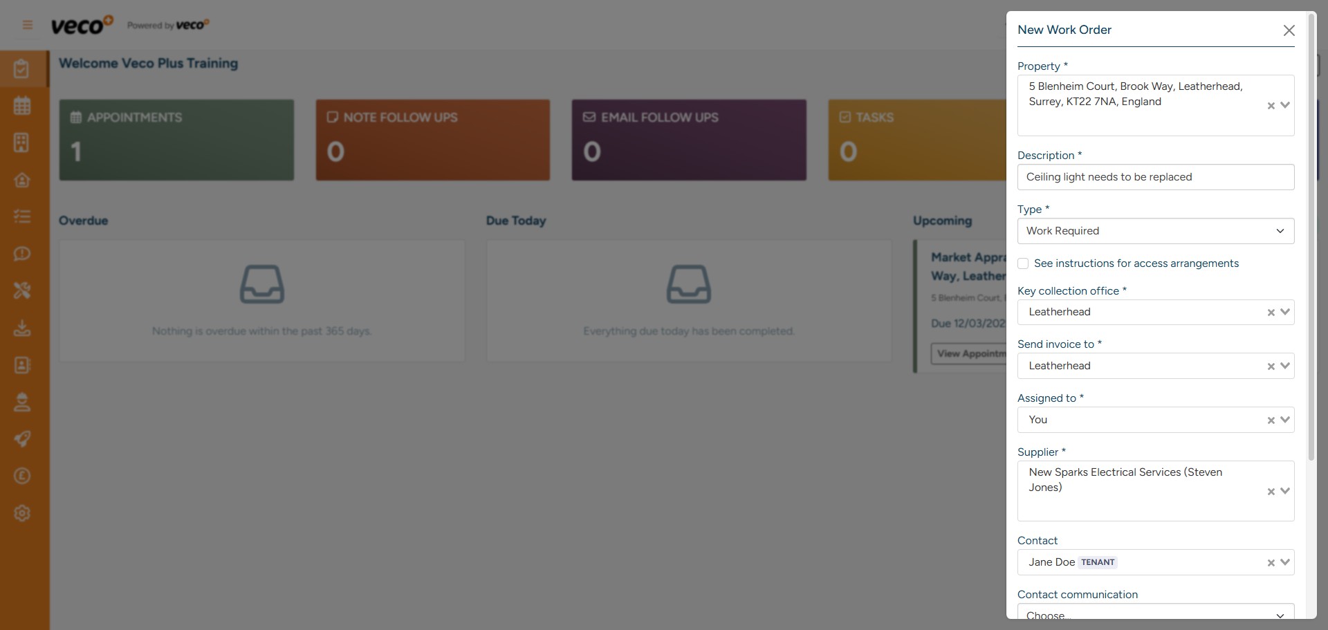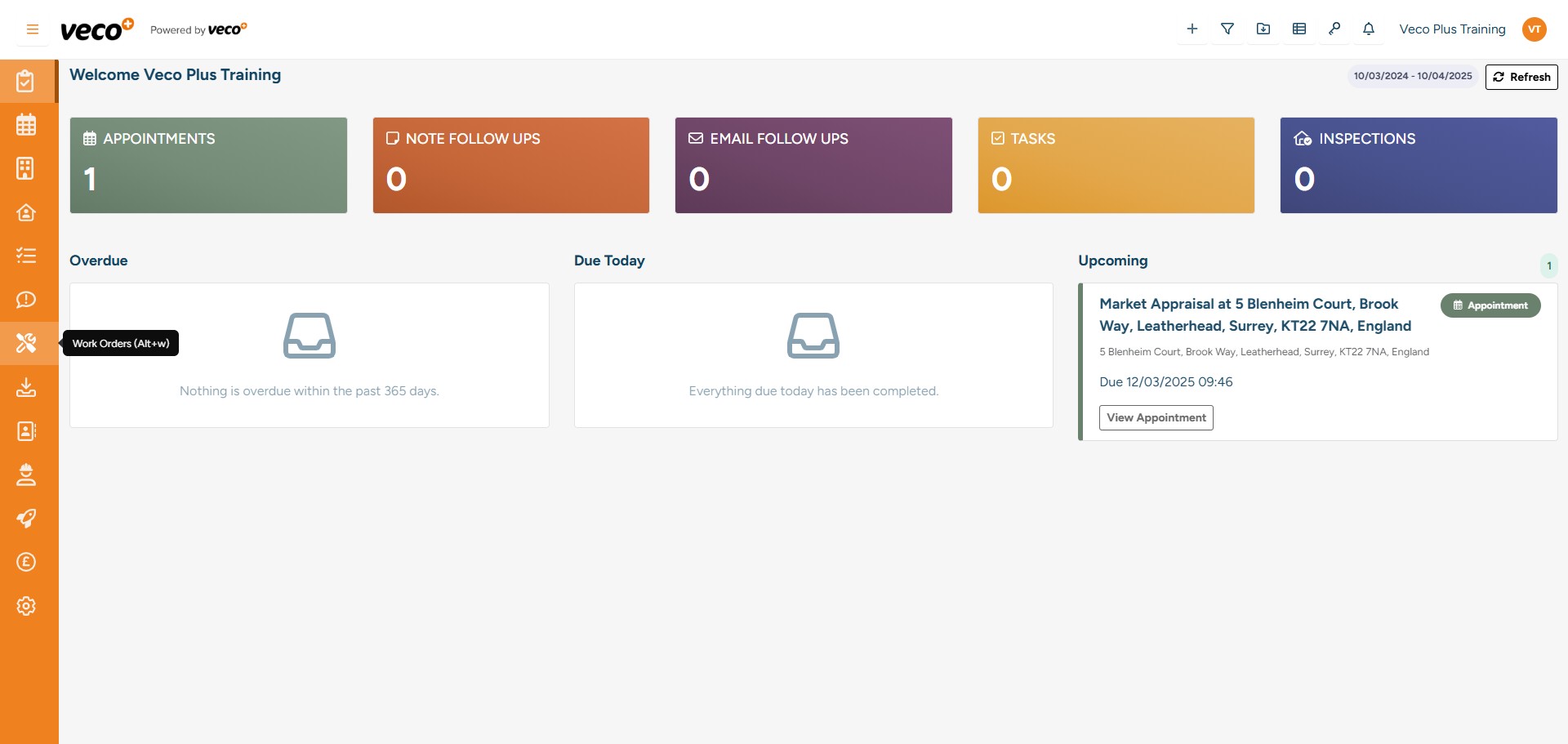You can also add a Work Order from the Work Order area on the navigation bar – once there, select ‘New Work Order’ in the upper right corner