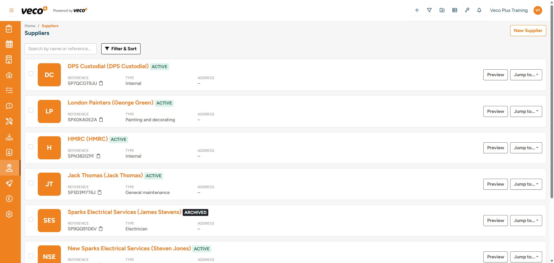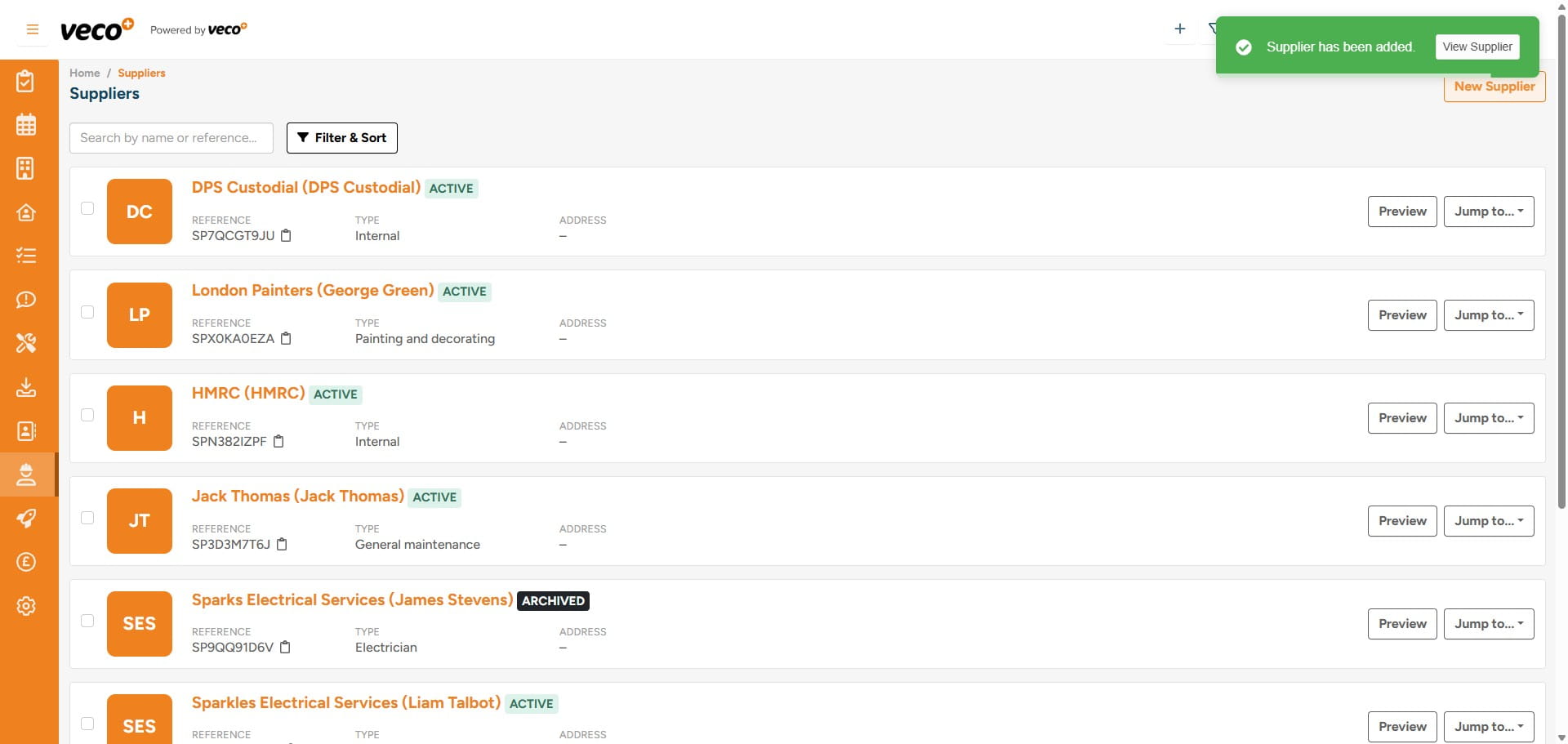 Select 'View Supplier' to open the Supplier record. You can also access the record via 'Suppliers' in the navigation bar