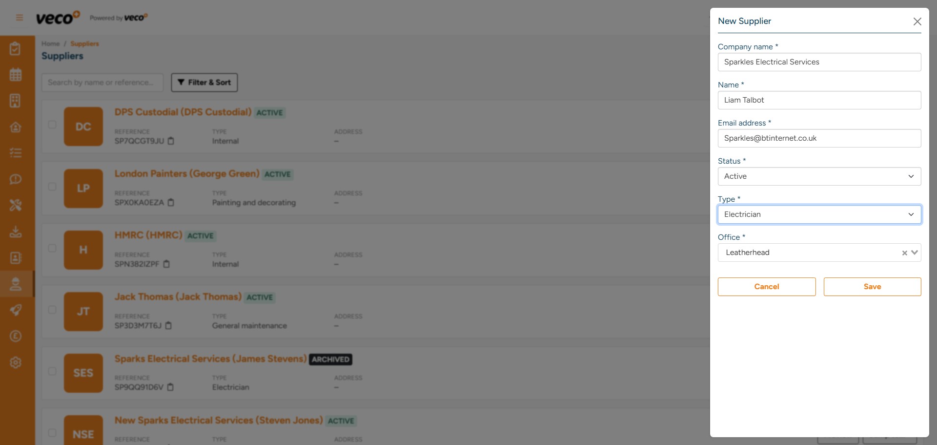 In the ‘Menu’ on the supplier record, additional information can be added – including the supplier’s address and trade qualifications held.
